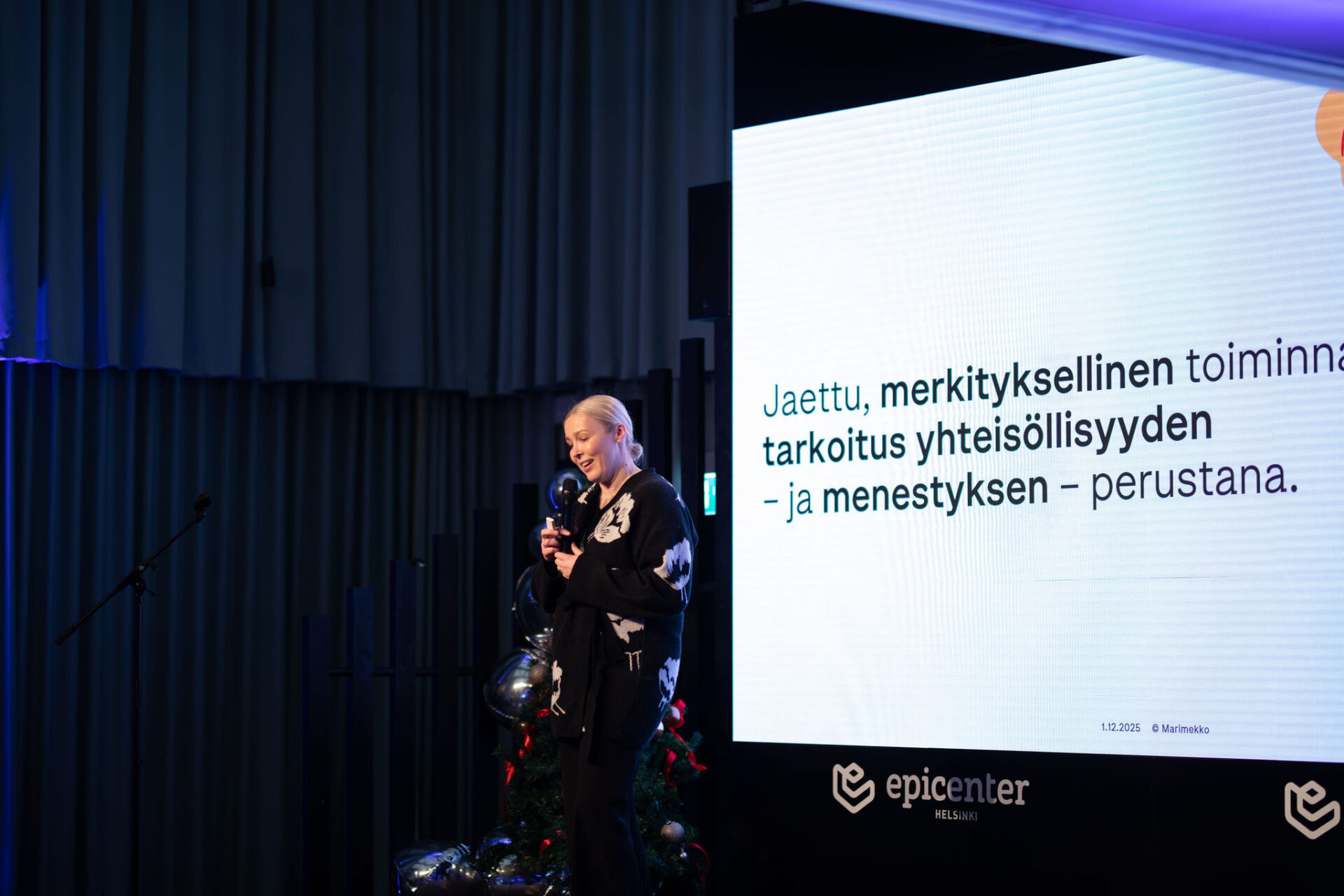 Tiina Alahuhta-Kasko, Marimekon toimitusjohtaja, puhui yhteisöllisyyden merkityksestä menestyksen rakentamisessa. Hänen viestinsä oli selkeä: yritysten rooli ei rajoitu taloudelliseen tulokseen, vaan ne voivat olla voimakkaita yhteisön rakentajia ja toivon tuojia. Hän nosti esiin, miten määrätietoinen arvopohjainen johtaminen ja kulttuuri voivat luoda kestävää kasvua. Tiina kannusti lopuksi yrityksiä rohkeasti palkkaamaan nuoria, heissä on tulevaisuus.
